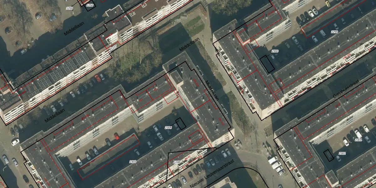 Het perceel waarop Middellaan 253 staat heeft een oppervlakte van 5138 m². Dit is een zeer groot perceel. De perceeloppervlakte wordt geregistreerd door het Kadaster. Gedetailleerde informatie over de maten van dit perceel kunt u vinden in het rapport Kadastrale kaart met maatvoering van Middellaan 253.