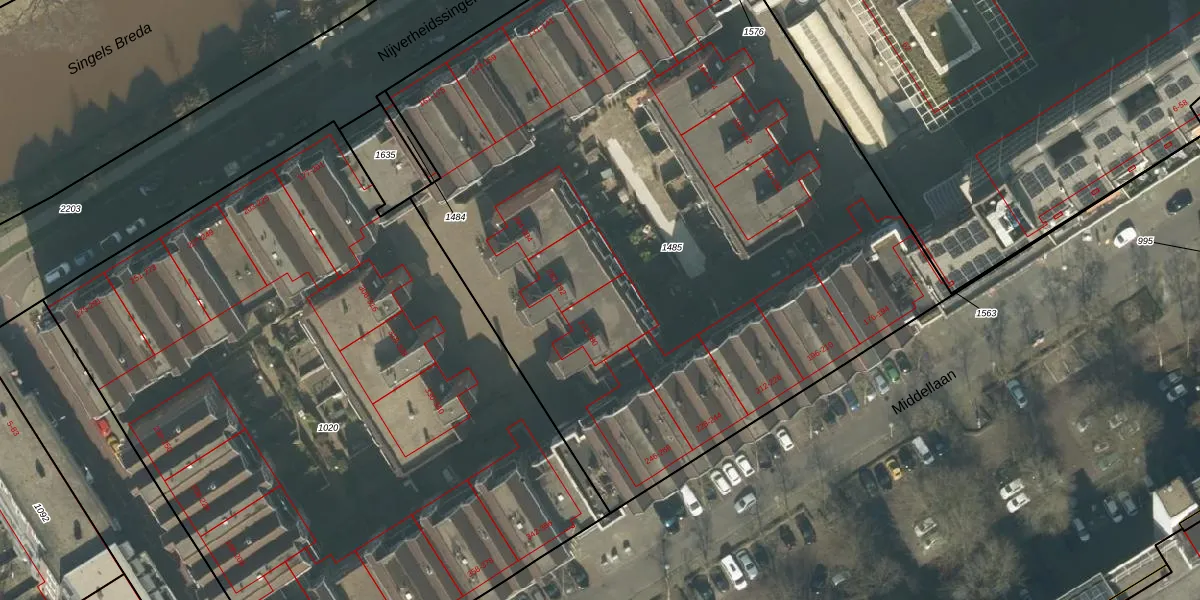 Middellaan 278 is gelegen op kadastraal perceel BDA00F1485. Deze kadastrale aanduiding is uniek en wordt gebruikt door het Kadaster om eigendomsrechten en andere zakelijke rechten vast te leggen. Het perceel maakt onderdeel uit van de kadastrale gemeente Breda.