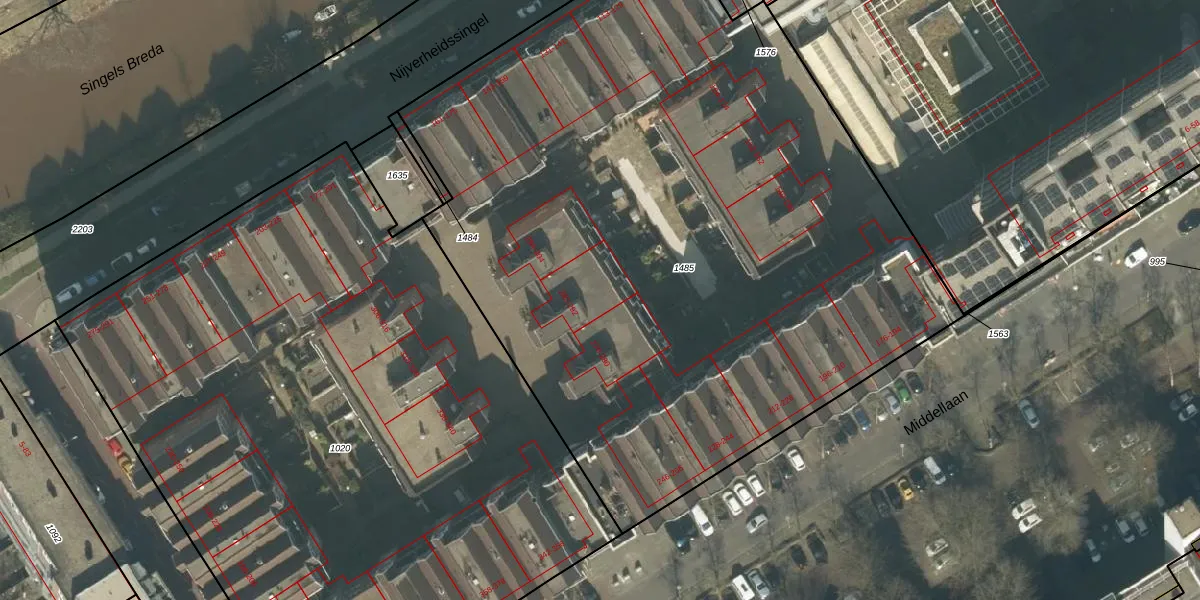 Middellaan 284 is gelegen op kadastraal perceel BDA00F1485. Deze kadastrale aanduiding is uniek en wordt gebruikt door het Kadaster om eigendomsrechten en andere zakelijke rechten vast te leggen. Het perceel maakt onderdeel uit van de kadastrale gemeente Breda.