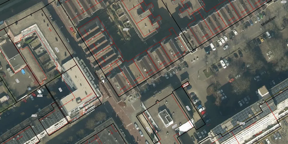Het perceel waarop Middellaan 398 staat heeft een oppervlakte van 4855 m². Dit is een zeer groot perceel. De perceeloppervlakte wordt geregistreerd door het Kadaster. Gedetailleerde informatie over de maten van dit perceel kunt u vinden in het rapport Kadastrale kaart met maatvoering van Middellaan 398.