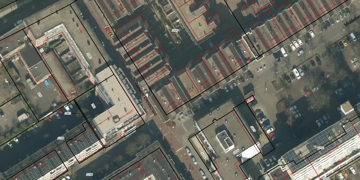 Het perceel waarop Middellaan 420 staat heeft een oppervlakte van 4855 m². Dit is een zeer groot perceel. De perceeloppervlakte wordt geregistreerd door het Kadaster. Gedetailleerde informatie over de maten van dit perceel kunt u vinden in het rapport Kadastrale kaart met maatvoering van Middellaan 420.