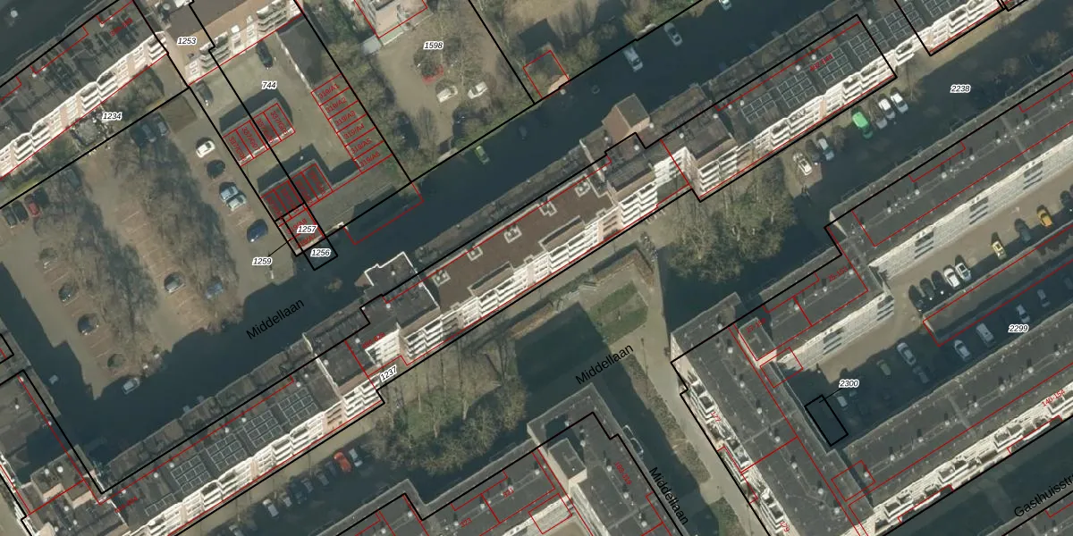Het perceel waarop Middellaan 492 staat heeft een oppervlakte van 2923 m². Dit is een zeer groot perceel. De perceeloppervlakte wordt geregistreerd door het Kadaster. Gedetailleerde informatie over de maten van dit perceel kunt u vinden in het rapport Kadastrale kaart met maatvoering van Middellaan 492.