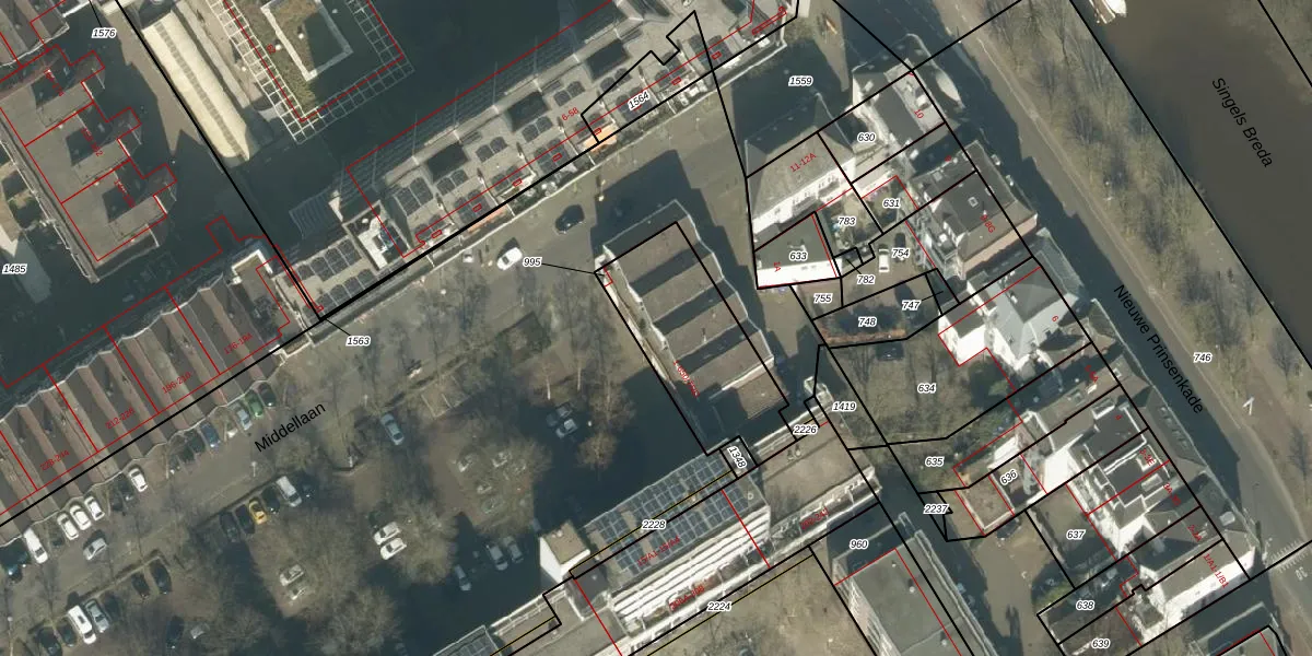 Middellaan 5 is gelegen op kadastraal perceel BDA00F995. Deze kadastrale aanduiding is uniek en wordt gebruikt door het Kadaster om eigendomsrechten en andere zakelijke rechten vast te leggen. Het perceel maakt onderdeel uit van de kadastrale gemeente Breda.
