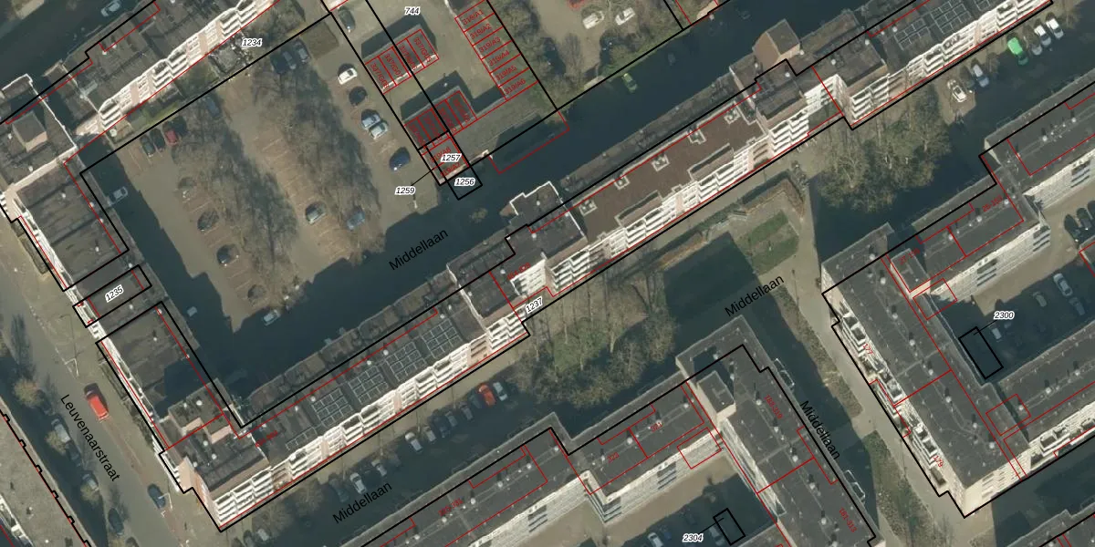 Middellaan 584 is gelegen op kadastraal perceel BDA00F1237. Deze kadastrale aanduiding is uniek en wordt gebruikt door het Kadaster om eigendomsrechten en andere zakelijke rechten vast te leggen. Het perceel maakt onderdeel uit van de kadastrale gemeente Breda.