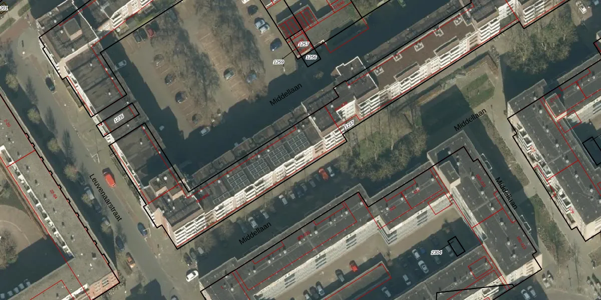 Middellaan 624 is gelegen op kadastraal perceel BDA00F1237. Deze kadastrale aanduiding is uniek en wordt gebruikt door het Kadaster om eigendomsrechten en andere zakelijke rechten vast te leggen. Het perceel maakt onderdeel uit van de kadastrale gemeente Breda.