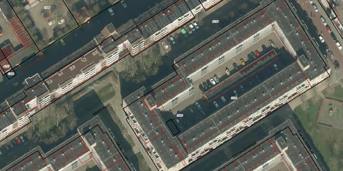 Middellaan 63 is gelegen op kadastraal perceel BDA00F2299. Deze kadastrale aanduiding is uniek en wordt gebruikt door het Kadaster om eigendomsrechten en andere zakelijke rechten vast te leggen. Het perceel maakt onderdeel uit van de kadastrale gemeente Breda.