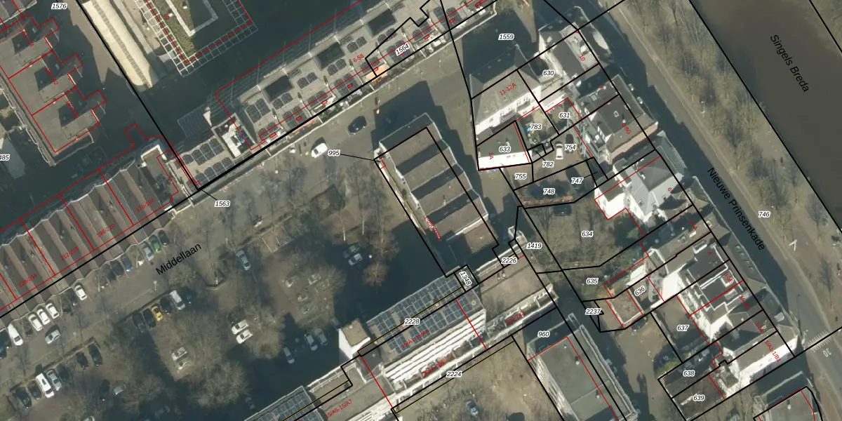Middellaan 7 is gelegen op kadastraal perceel BDA00F995. Deze kadastrale aanduiding is uniek en wordt gebruikt door het Kadaster om eigendomsrechten en andere zakelijke rechten vast te leggen. Het perceel maakt onderdeel uit van de kadastrale gemeente Breda.