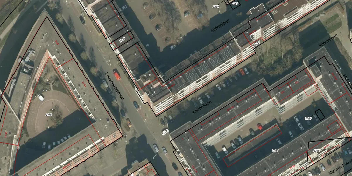 Middellaan 712 is gelegen op kadastraal perceel BDA00F1237. Deze kadastrale aanduiding is uniek en wordt gebruikt door het Kadaster om eigendomsrechten en andere zakelijke rechten vast te leggen. Het perceel maakt onderdeel uit van de kadastrale gemeente Breda.