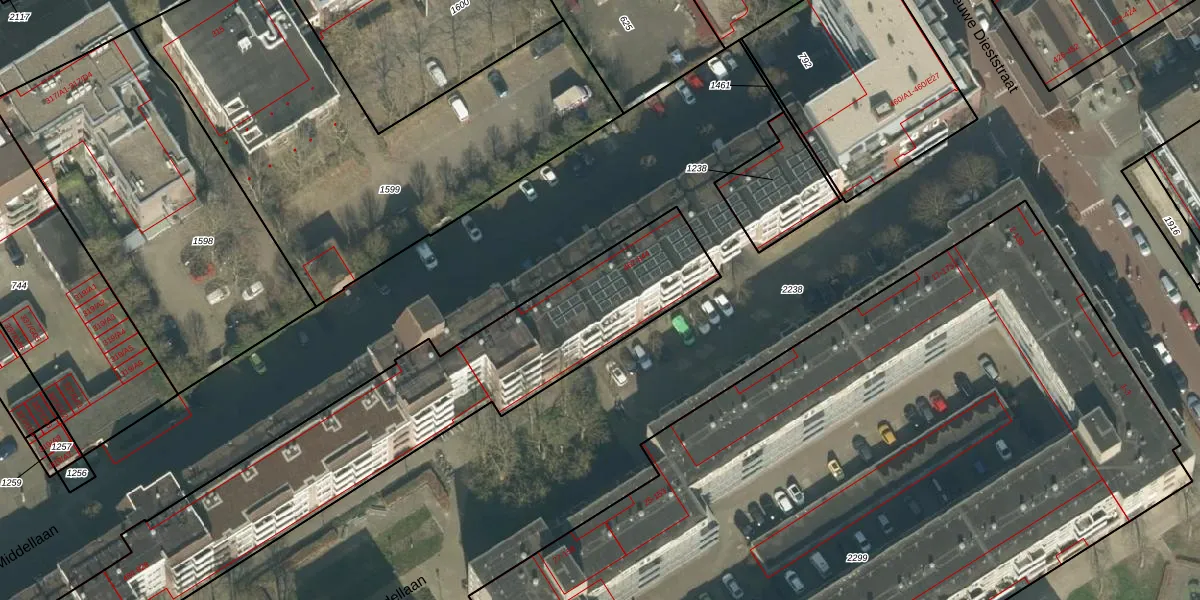 Middellaan 736 is gelegen op kadastraal perceel BDA00F1237. Deze kadastrale aanduiding is uniek en wordt gebruikt door het Kadaster om eigendomsrechten en andere zakelijke rechten vast te leggen. Het perceel maakt onderdeel uit van de kadastrale gemeente Breda.