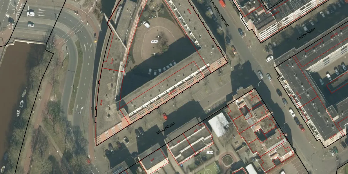 Het perceel waarop Middellaan 856 staat heeft een oppervlakte van 4440 m². Dit is een zeer groot perceel. De perceeloppervlakte wordt geregistreerd door het Kadaster. Gedetailleerde informatie over de maten van dit perceel kunt u vinden in het rapport Kadastrale kaart met maatvoering van Middellaan 856.