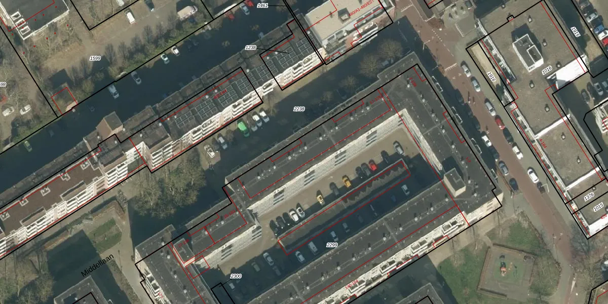 Het perceel waarop Middellaan 89 staat heeft een oppervlakte van 5983 m². Dit is een zeer groot perceel. De perceeloppervlakte wordt geregistreerd door het Kadaster. Gedetailleerde informatie over de maten van dit perceel kunt u vinden in het rapport Kadastrale kaart met maatvoering van Middellaan 89.