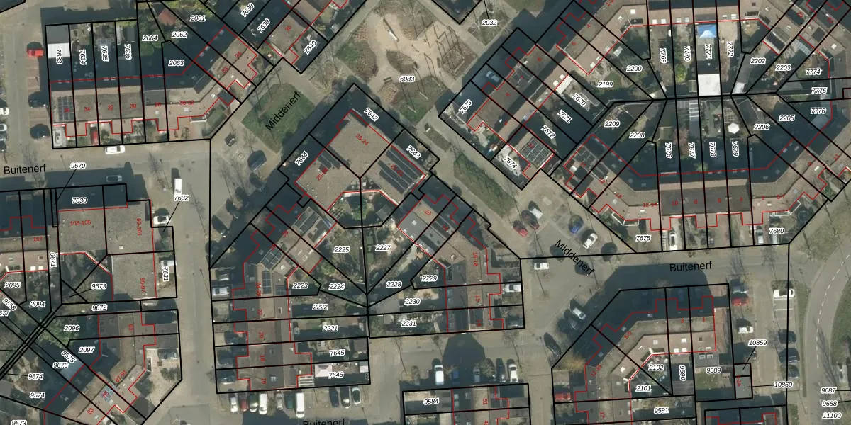 Middenerf 20 is gelegen op kadastraal perceel BDA00H2227. Deze kadastrale aanduiding is uniek en wordt gebruikt door het Kadaster om eigendomsrechten en andere zakelijke rechten vast te leggen. Het perceel maakt onderdeel uit van de kadastrale gemeente Breda.