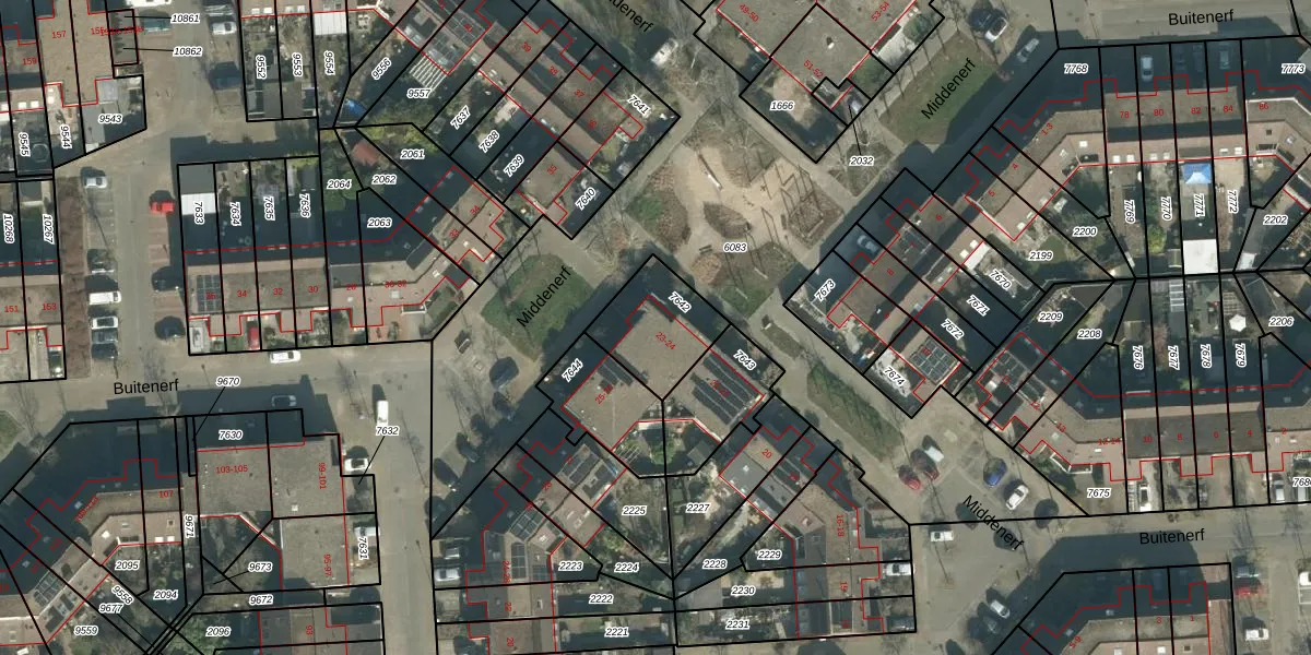 Middenerf 23 is gelegen op kadastraal perceel BDA00H7642. Deze kadastrale aanduiding is uniek en wordt gebruikt door het Kadaster om eigendomsrechten en andere zakelijke rechten vast te leggen. Het perceel maakt onderdeel uit van de kadastrale gemeente Breda.