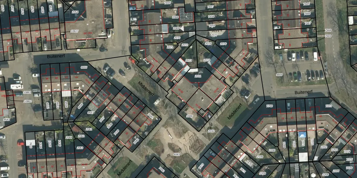 Het perceel waarop Middenerf 49 staat heeft een oppervlakte van 484 m². Dit is een groot perceel. De perceeloppervlakte wordt geregistreerd door het Kadaster. Gedetailleerde informatie over de maten van dit perceel kunt u vinden in het rapport Kadastrale kaart met maatvoering van Middenerf 49.