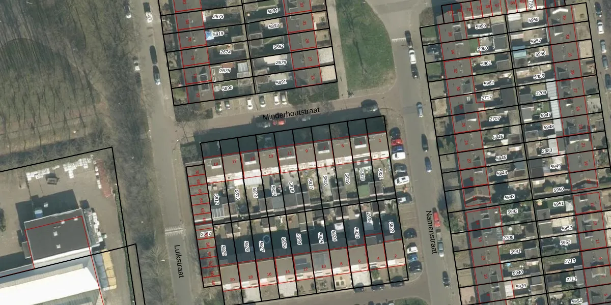 Gebruik de zoekbalk of klik op een perceel voor informatie over de adressen binnen dit perceel.