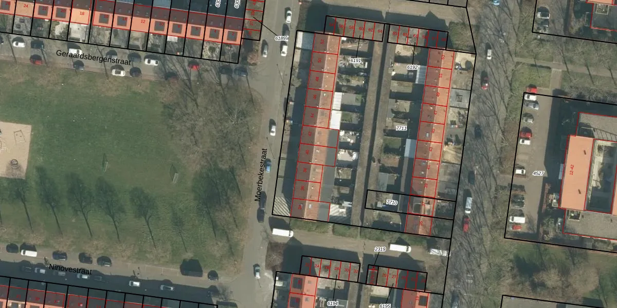 Het perceel waarop Moerbekestraat 40 staat heeft een oppervlakte van 3389 m². Dit is een zeer groot perceel. De perceeloppervlakte wordt geregistreerd door het Kadaster. Gedetailleerde informatie over de maten van dit perceel kunt u vinden in het rapport Kadastrale kaart met maatvoering van Moerbekestraat 40.