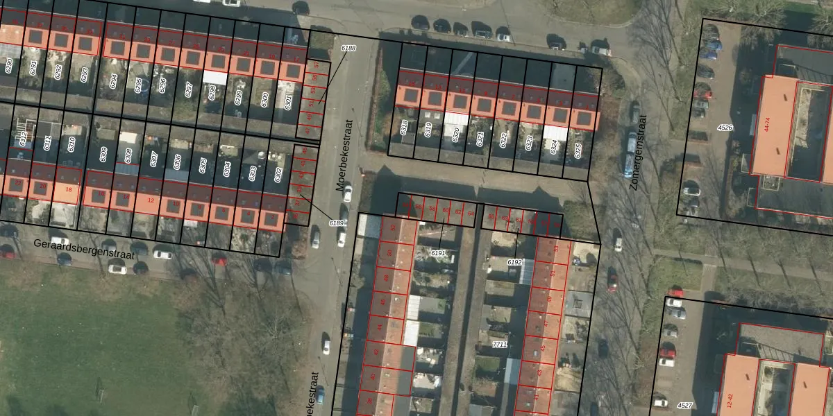Moerbekestraat 56 is gelegen op kadastraal perceel BDA00G6191. Deze kadastrale aanduiding is uniek en wordt gebruikt door het Kadaster om eigendomsrechten en andere zakelijke rechten vast te leggen. Het perceel maakt onderdeel uit van de kadastrale gemeente Breda.