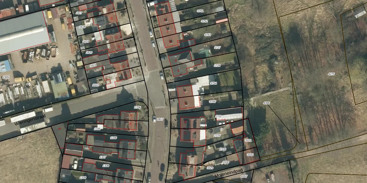 Moleneindstraat 32 is gelegen op kadastraal perceel GNK02N3754. Deze kadastrale aanduiding is uniek en wordt gebruikt door het Kadaster om eigendomsrechten en andere zakelijke rechten vast te leggen. Het perceel maakt onderdeel uit van de kadastrale gemeente Ginneken.