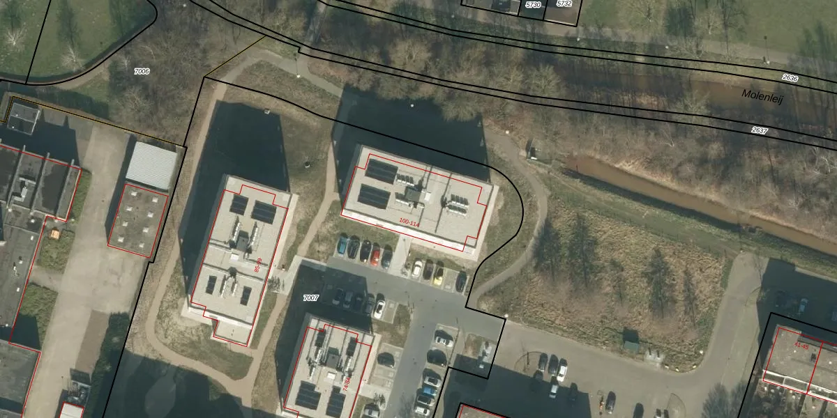 Het perceel waarop Molenslag 102 staat heeft een oppervlakte van 6770 m². Dit is een zeer groot perceel. De perceeloppervlakte wordt geregistreerd door het Kadaster. Gedetailleerde informatie over de maten van dit perceel kunt u vinden in het rapport Kadastrale kaart met maatvoering van Molenslag 102.