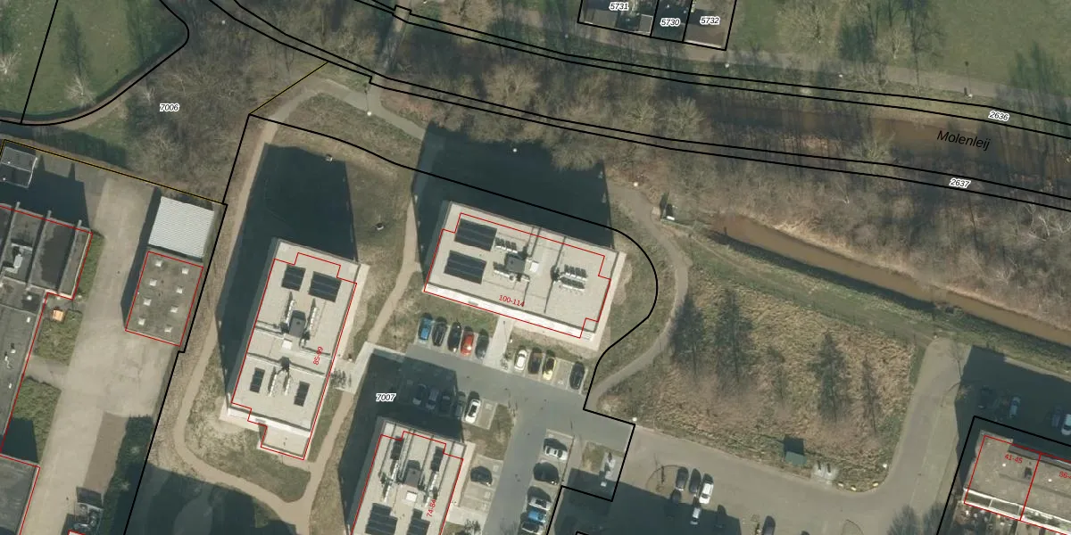 Het perceel waarop Molenslag 105 staat heeft een oppervlakte van 6770 m². Dit is een zeer groot perceel. De perceeloppervlakte wordt geregistreerd door het Kadaster. Gedetailleerde informatie over de maten van dit perceel kunt u vinden in het rapport Kadastrale kaart met maatvoering van Molenslag 105.