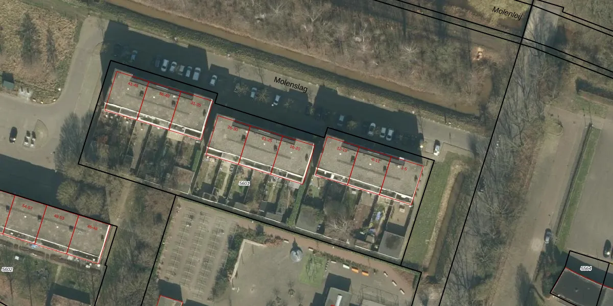 Molenslag 16 is gelegen op kadastraal perceel GNK02A5601. Deze kadastrale aanduiding is uniek en wordt gebruikt door het Kadaster om eigendomsrechten en andere zakelijke rechten vast te leggen. Het perceel maakt onderdeel uit van de kadastrale gemeente Ginneken.