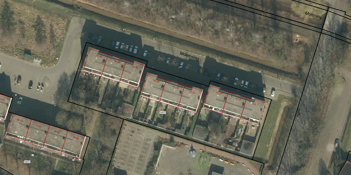 Molenslag 23 is gelegen op kadastraal perceel GNK02A5601. Deze kadastrale aanduiding is uniek en wordt gebruikt door het Kadaster om eigendomsrechten en andere zakelijke rechten vast te leggen. Het perceel maakt onderdeel uit van de kadastrale gemeente Ginneken.
