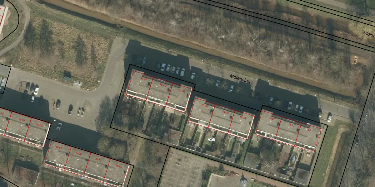 Het perceel waarop Molenslag 31 staat heeft een oppervlakte van 3830 m². Dit is een zeer groot perceel. De perceeloppervlakte wordt geregistreerd door het Kadaster. Gedetailleerde informatie over de maten van dit perceel kunt u vinden in het rapport Kadastrale kaart met maatvoering van Molenslag 31.