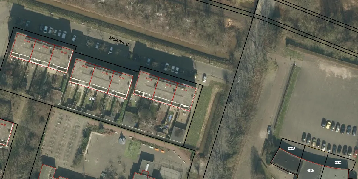Molenslag 5 is gelegen op kadastraal perceel GNK02A5601. Deze kadastrale aanduiding is uniek en wordt gebruikt door het Kadaster om eigendomsrechten en andere zakelijke rechten vast te leggen. Het perceel maakt onderdeel uit van de kadastrale gemeente Ginneken.