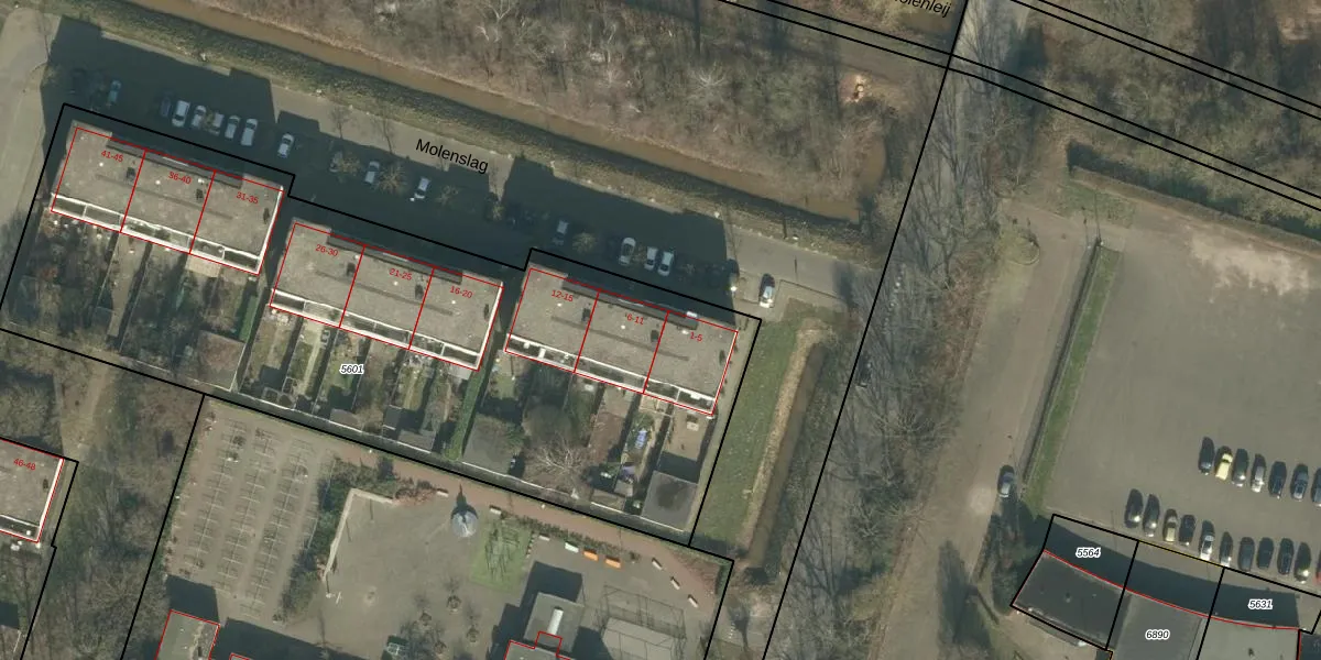 Molenslag 6 is gelegen op kadastraal perceel GNK02A5601. Deze kadastrale aanduiding is uniek en wordt gebruikt door het Kadaster om eigendomsrechten en andere zakelijke rechten vast te leggen. Het perceel maakt onderdeel uit van de kadastrale gemeente Ginneken.