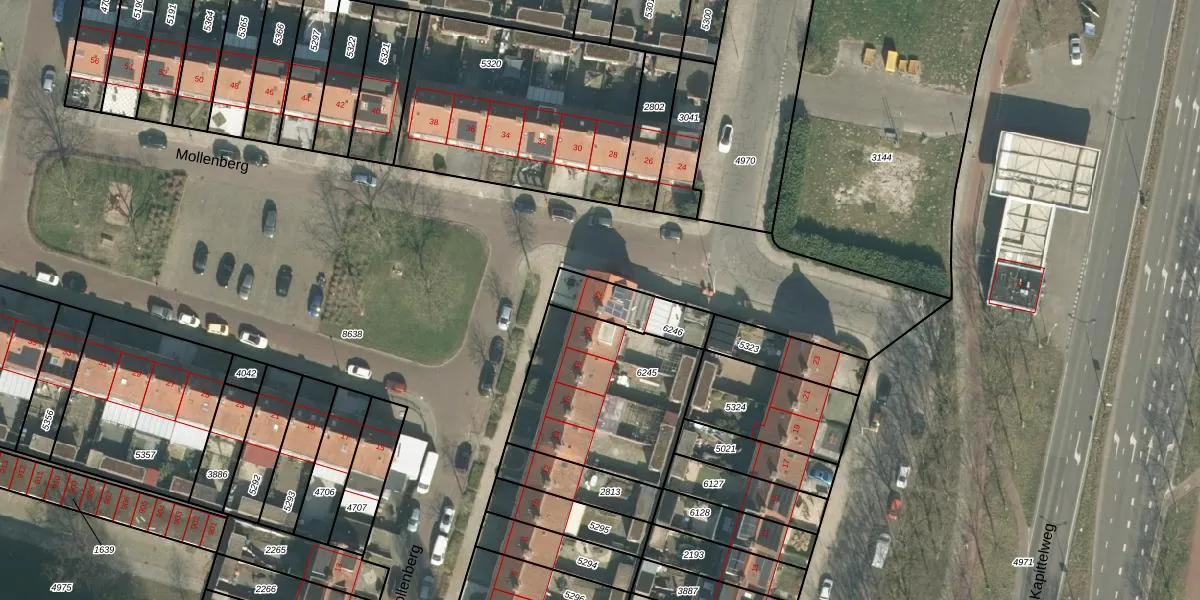 Het perceel waarop Mollenberg 22 staat heeft een oppervlakte van 169 m². Dit is een middelgroot perceel. De perceeloppervlakte wordt geregistreerd door het Kadaster. Gedetailleerde informatie over de maten van dit perceel kunt u vinden in het rapport Kadastrale kaart met maatvoering van Mollenberg 22.