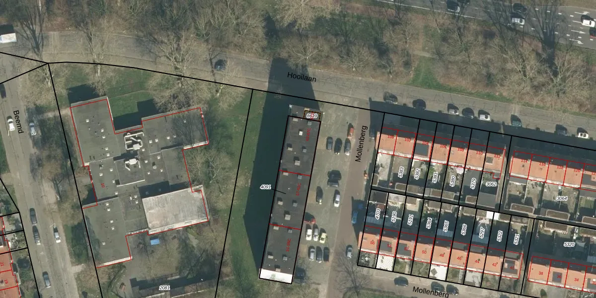 Het perceel waarop Mollenberg 65-C staat heeft een oppervlakte van 615 m². Dit is een groot perceel. De perceeloppervlakte wordt geregistreerd door het Kadaster. Gedetailleerde informatie over de maten van dit perceel kunt u vinden in het rapport Kadastrale kaart met maatvoering van Mollenberg 65-C.