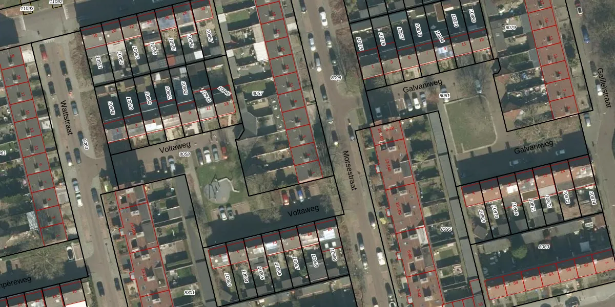 Het perceel waarop Morsestraat 3 staat heeft een oppervlakte van 1700 m². Dit is een zeer groot perceel. De perceeloppervlakte wordt geregistreerd door het Kadaster. Gedetailleerde informatie over de maten van dit perceel kunt u vinden in het rapport Kadastrale kaart met maatvoering van Morsestraat 3.