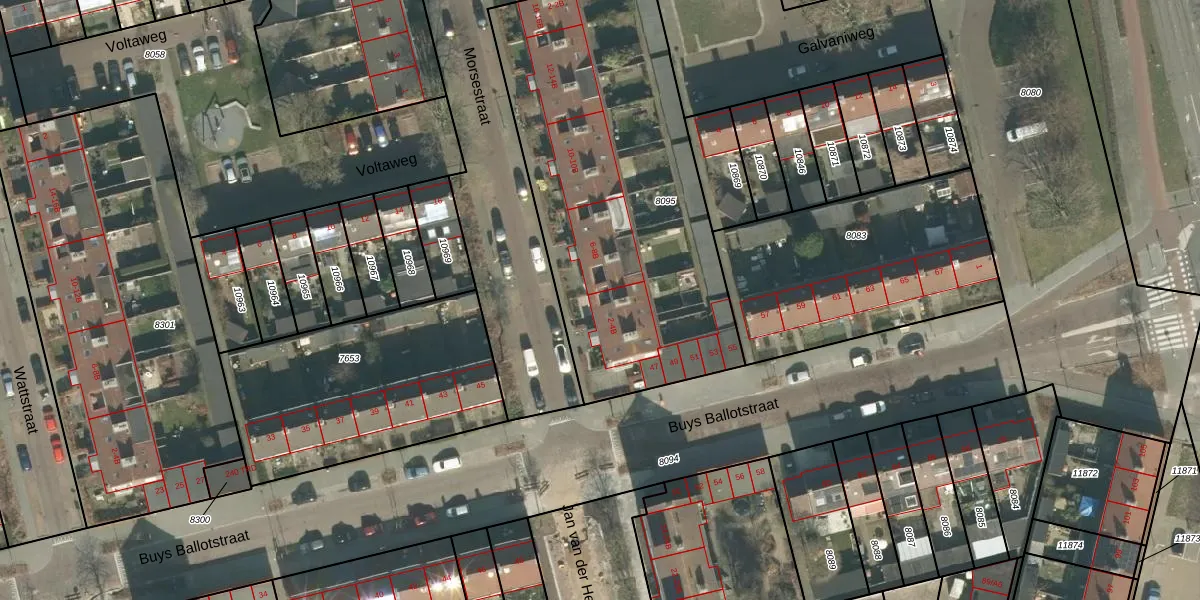 Het perceel waarop Morsestraat 4 staat heeft een oppervlakte van 1870 m². Dit is een zeer groot perceel. De perceeloppervlakte wordt geregistreerd door het Kadaster. Gedetailleerde informatie over de maten van dit perceel kunt u vinden in het rapport Kadastrale kaart met maatvoering van Morsestraat 4.
