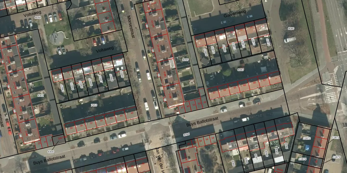 Het perceel waarop Morsestraat 4-B staat heeft een oppervlakte van 1870 m². Dit is een zeer groot perceel. De perceeloppervlakte wordt geregistreerd door het Kadaster. Gedetailleerde informatie over de maten van dit perceel kunt u vinden in het rapport Kadastrale kaart met maatvoering van Morsestraat 4-B.