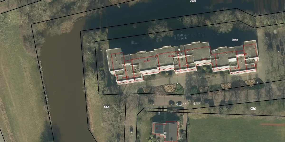 Het perceel waarop Mozartlaan 104 staat heeft een oppervlakte van 6435 m². Dit is een zeer groot perceel. De perceeloppervlakte wordt geregistreerd door het Kadaster. Gedetailleerde informatie over de maten van dit perceel kunt u vinden in het rapport Kadastrale kaart met maatvoering van Mozartlaan 104.