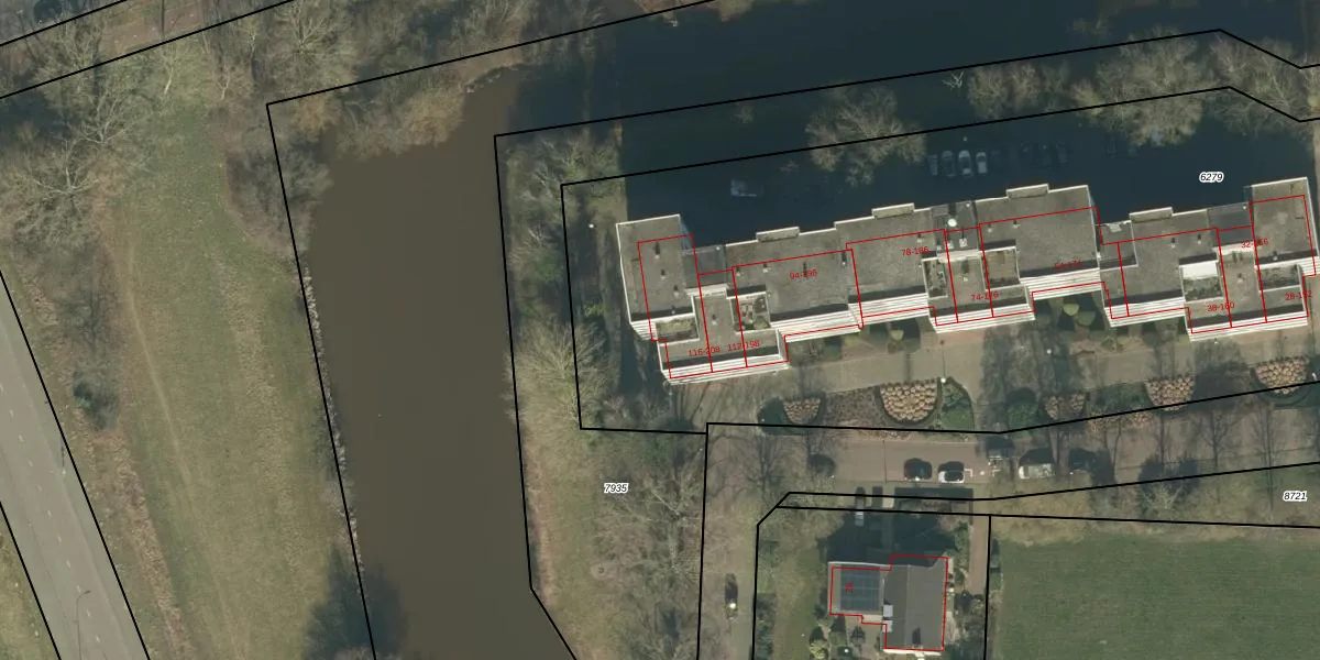 Het perceel waarop Mozartlaan 122 staat heeft een oppervlakte van 6435 m². Dit is een zeer groot perceel. De perceeloppervlakte wordt geregistreerd door het Kadaster. Gedetailleerde informatie over de maten van dit perceel kunt u vinden in het rapport Kadastrale kaart met maatvoering van Mozartlaan 122.