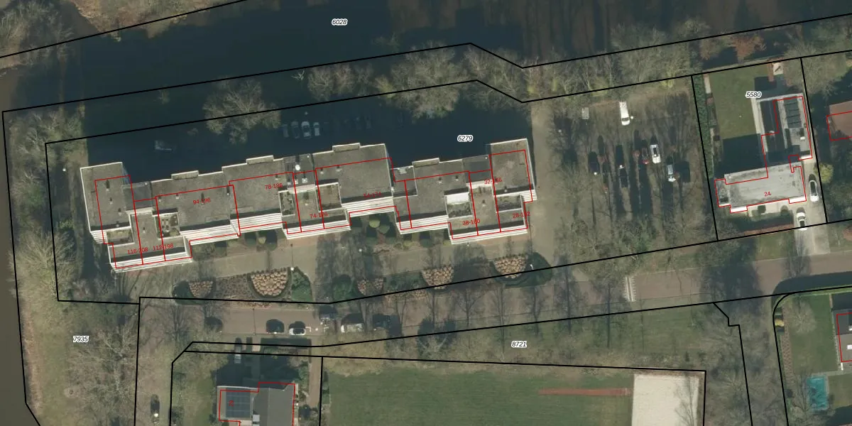 Het perceel waarop Mozartlaan 48 staat heeft een oppervlakte van 6435 m². Dit is een zeer groot perceel. De perceeloppervlakte wordt geregistreerd door het Kadaster. Gedetailleerde informatie over de maten van dit perceel kunt u vinden in het rapport Kadastrale kaart met maatvoering van Mozartlaan 48.