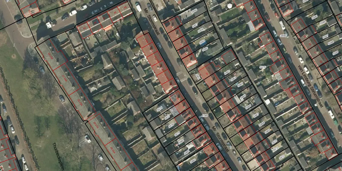 Het perceel waarop Mr. Stormstraat 16 staat heeft een oppervlakte van 8153 m². Dit is een zeer groot perceel. De perceeloppervlakte wordt geregistreerd door het Kadaster. Gedetailleerde informatie over de maten van dit perceel kunt u vinden in het rapport Kadastrale kaart met maatvoering van Mr. Stormstraat 16.