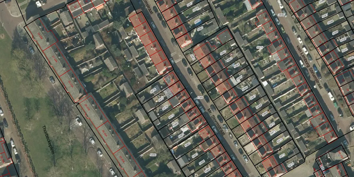 Mr. Stormstraat 20 is gelegen op kadastraal perceel PCH00I5977. Deze kadastrale aanduiding is uniek en wordt gebruikt door het Kadaster om eigendomsrechten en andere zakelijke rechten vast te leggen. Het perceel maakt onderdeel uit van de kadastrale gemeente Princenhage.