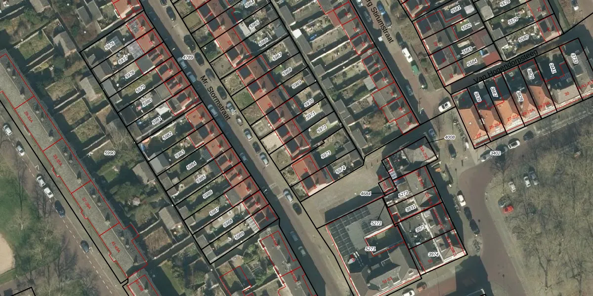 Mr. Stormstraat 37 is gelegen op kadastraal perceel PCH00I5972. Deze kadastrale aanduiding is uniek en wordt gebruikt door het Kadaster om eigendomsrechten en andere zakelijke rechten vast te leggen. Het perceel maakt onderdeel uit van de kadastrale gemeente Princenhage.