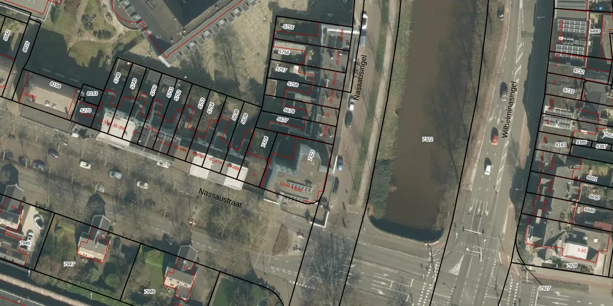Het perceel waarop Nassaustraat 53-A7 staat heeft een oppervlakte van 388 m². Dit is een groot perceel. De perceeloppervlakte wordt geregistreerd door het Kadaster. Gedetailleerde informatie over de maten van dit perceel kunt u vinden in het rapport Kadastrale kaart met maatvoering van Nassaustraat 53-A7.