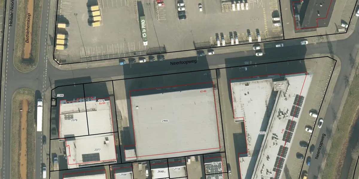 Neerloopweg 47 is gelegen op kadastraal perceel PCH00P2466. Deze kadastrale aanduiding is uniek en wordt gebruikt door het Kadaster om eigendomsrechten en andere zakelijke rechten vast te leggen. Het perceel maakt onderdeel uit van de kadastrale gemeente Princenhage.