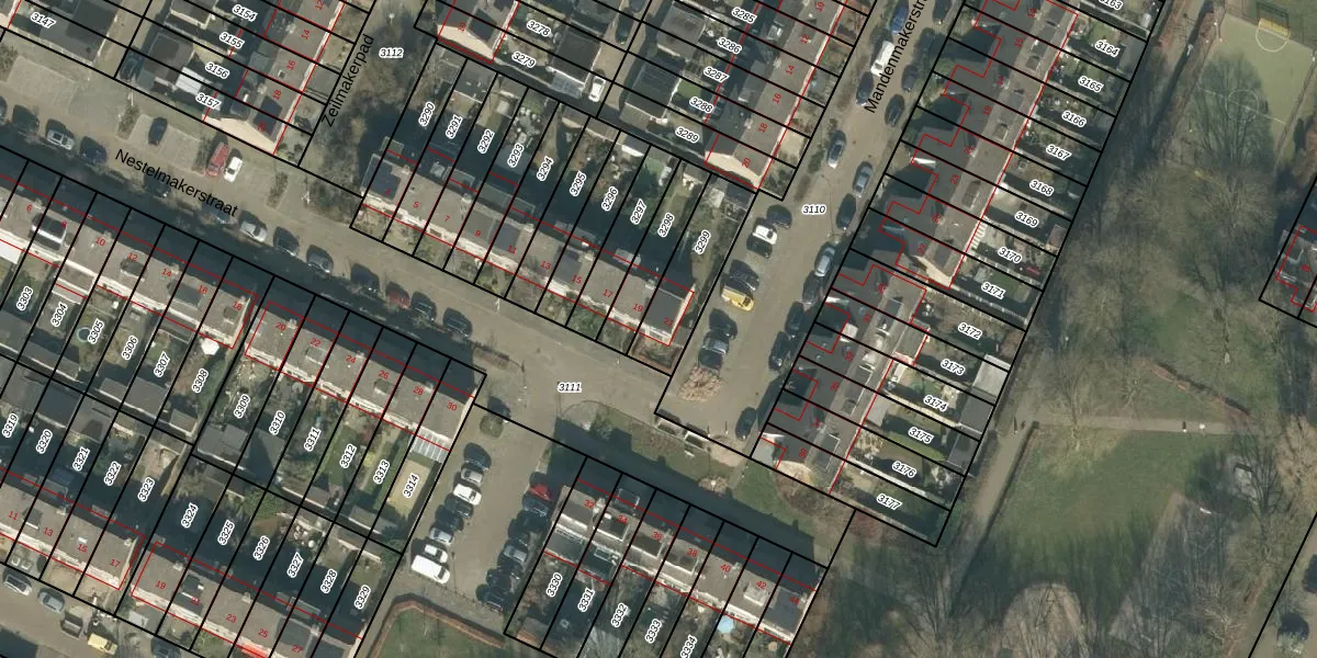 Nestelmakerstraat 21 is gelegen op kadastraal perceel PCH00N3299. Deze kadastrale aanduiding is uniek en wordt gebruikt door het Kadaster om eigendomsrechten en andere zakelijke rechten vast te leggen. Het perceel maakt onderdeel uit van de kadastrale gemeente Princenhage.