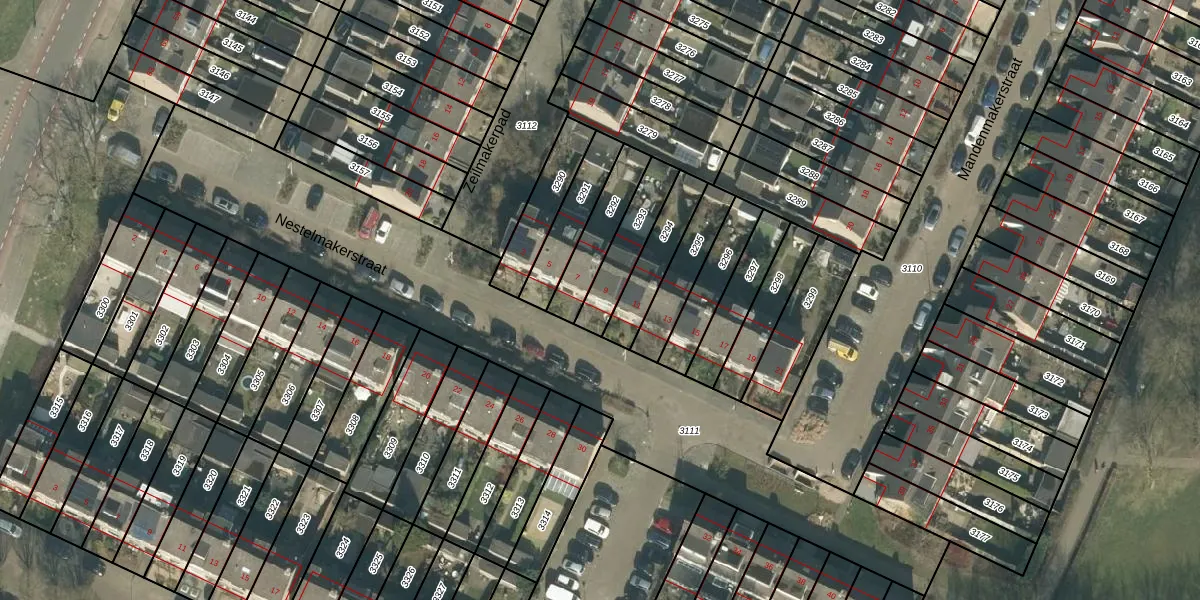 Het perceel waarop Nestelmakerstraat 9 staat heeft een oppervlakte van 158 m². Dit is een middelgroot perceel. De perceeloppervlakte wordt geregistreerd door het Kadaster. Gedetailleerde informatie over de maten van dit perceel kunt u vinden in het rapport Kadastrale kaart met maatvoering van Nestelmakerstraat 9.
