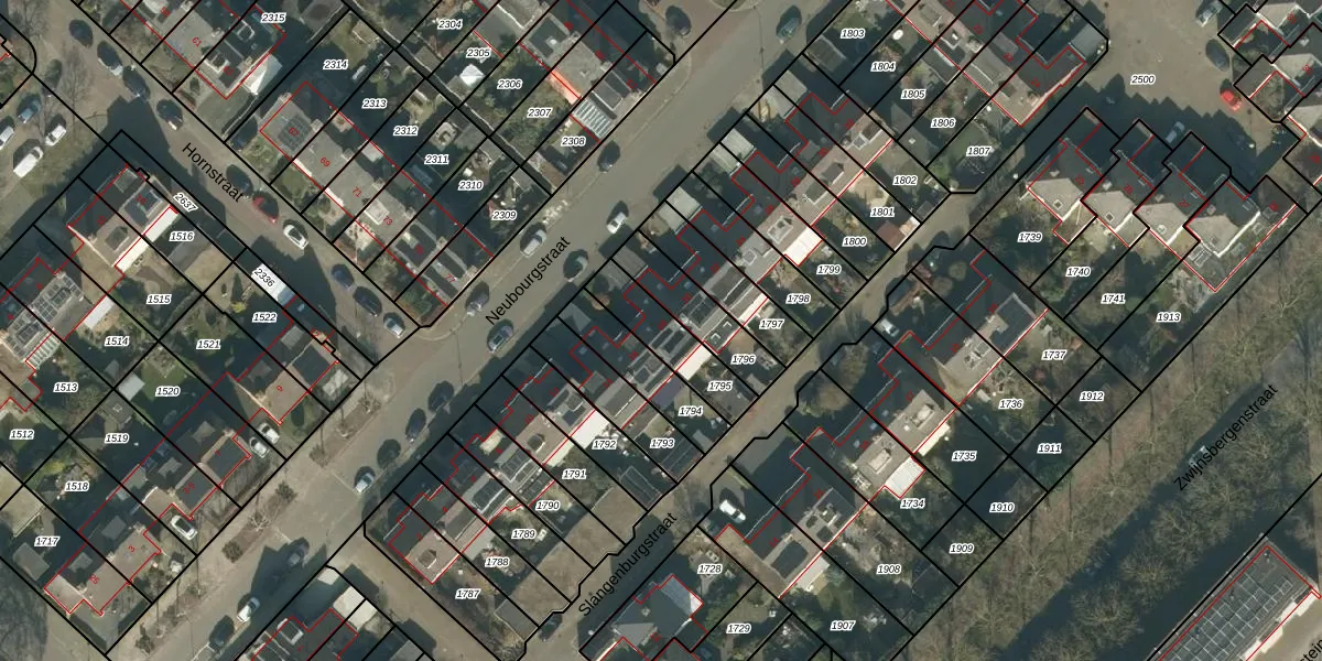 Het perceel waarop Neubourgstraat 18 staat heeft een oppervlakte van 185 m². Dit is een middelgroot perceel. De perceeloppervlakte wordt geregistreerd door het Kadaster. Gedetailleerde informatie over de maten van dit perceel kunt u vinden in het rapport Kadastrale kaart met maatvoering van Neubourgstraat 18.