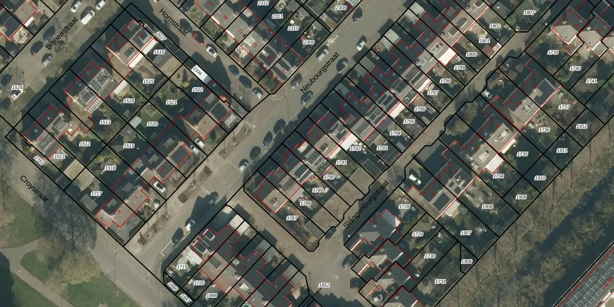 Het perceel waarop Neubourgstraat 8 staat heeft een oppervlakte van 184 m². Dit is een middelgroot perceel. De perceeloppervlakte wordt geregistreerd door het Kadaster. Gedetailleerde informatie over de maten van dit perceel kunt u vinden in het rapport Kadastrale kaart met maatvoering van Neubourgstraat 8.