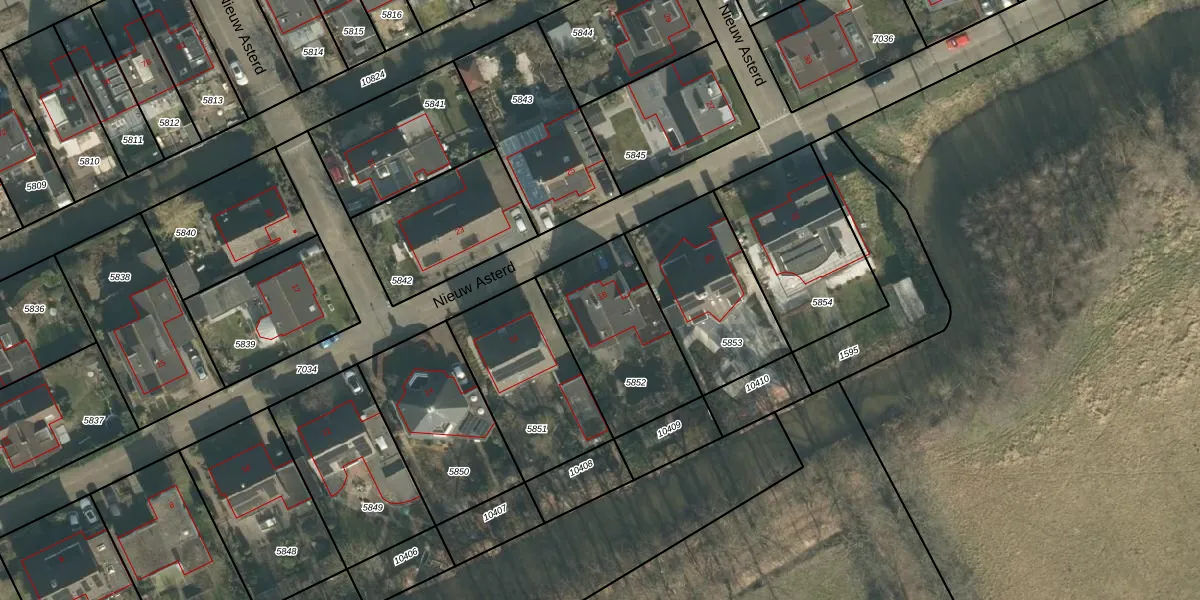 Het perceel waarop Nieuw Asterd 18 staat heeft een oppervlakte van 495 m². Dit is een groot perceel. De perceeloppervlakte wordt geregistreerd door het Kadaster. Gedetailleerde informatie over de maten van dit perceel kunt u vinden in het rapport Kadastrale kaart met maatvoering van Nieuw Asterd 18.