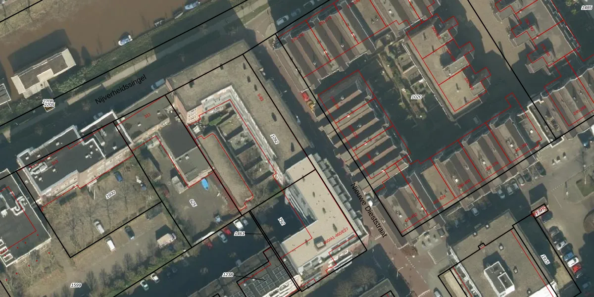 Het perceel waarop Nieuwe Dieststraat 21 staat heeft een oppervlakte van 1370 m². Dit is een zeer groot perceel. De perceeloppervlakte wordt geregistreerd door het Kadaster. Gedetailleerde informatie over de maten van dit perceel kunt u vinden in het rapport Kadastrale kaart met maatvoering van Nieuwe Dieststraat 21.