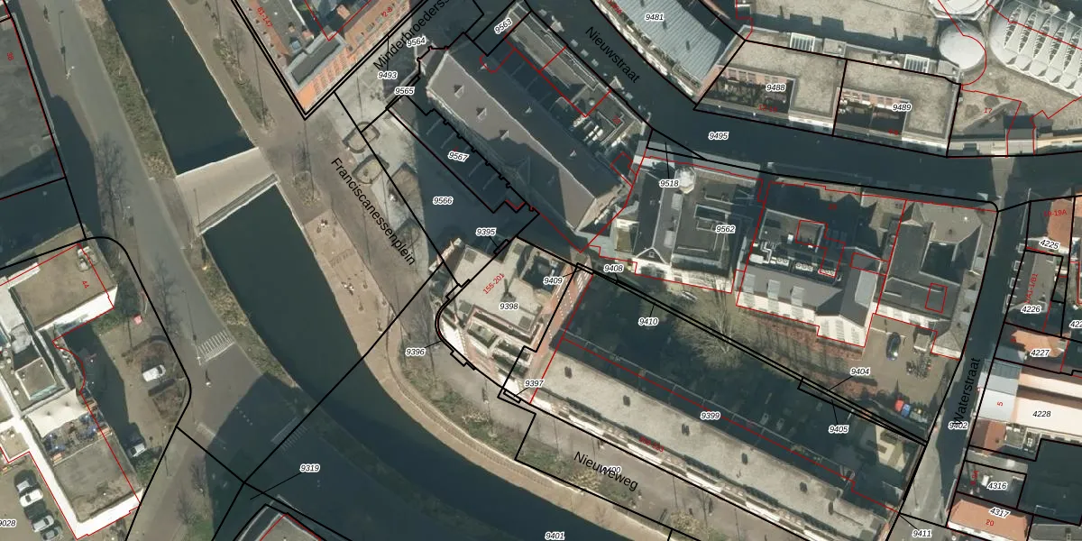 Nieuweweg 165 is gelegen op kadastraal perceel BDA00A9398. Deze kadastrale aanduiding is uniek en wordt gebruikt door het Kadaster om eigendomsrechten en andere zakelijke rechten vast te leggen. Het perceel maakt onderdeel uit van de kadastrale gemeente Breda.