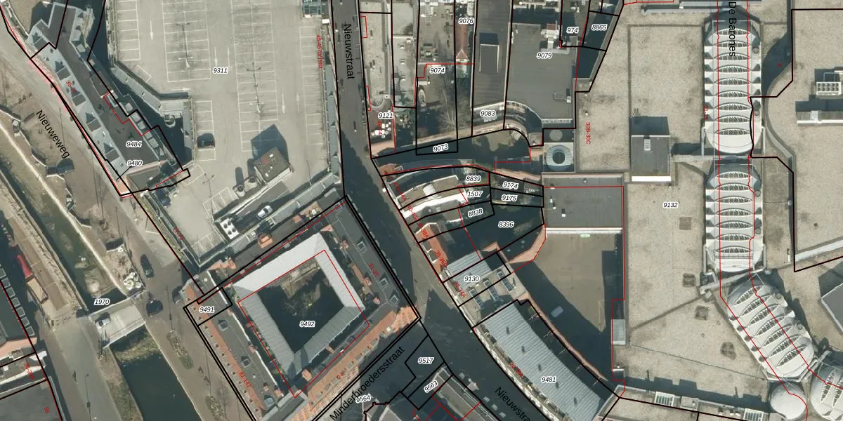 Het perceel waarop Nieuwstraat 40-A staat heeft een oppervlakte van 98 m². Dit is een klein perceel. De perceeloppervlakte wordt geregistreerd door het Kadaster. Gedetailleerde informatie over de maten van dit perceel kunt u vinden in het rapport Kadastrale kaart met maatvoering van Nieuwstraat 40-A.